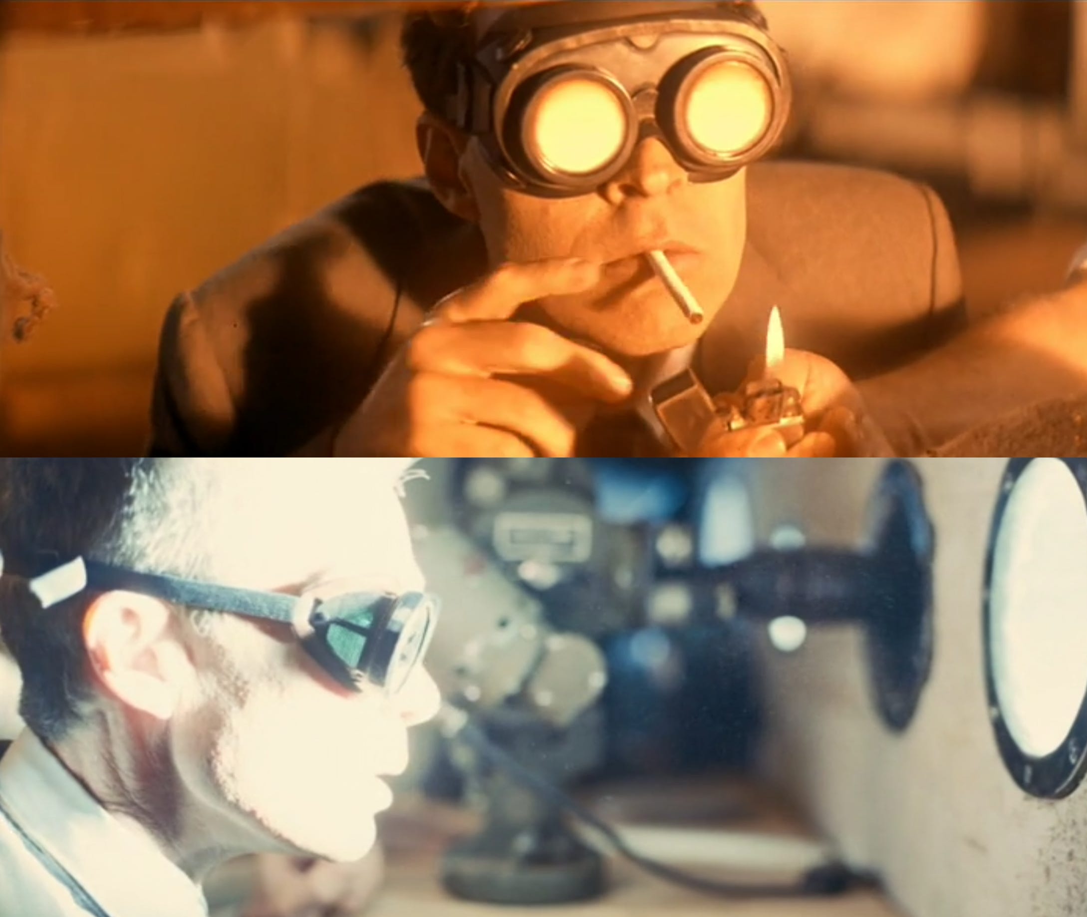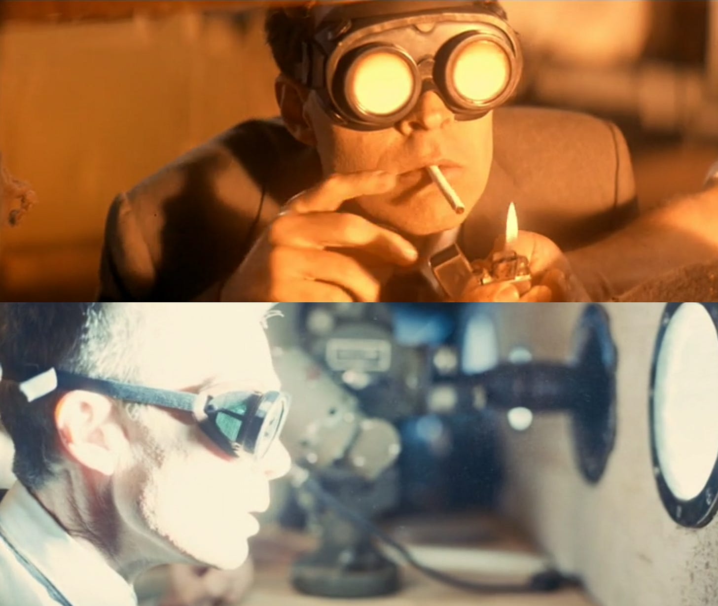 Oppenheimer watches the Trinity test. The same event but shown in two films with two different styles.